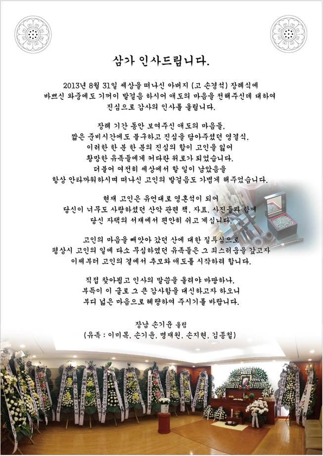아버님 장례에 많은 애도와 신경 써 주심을 깊이 감사드립니다.