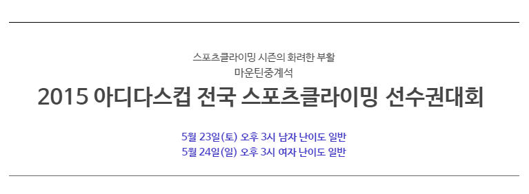 [마운틴TV] 클라이밍 시즌 첫경기, 아디다스컵 선수권대회 중계방송 안내